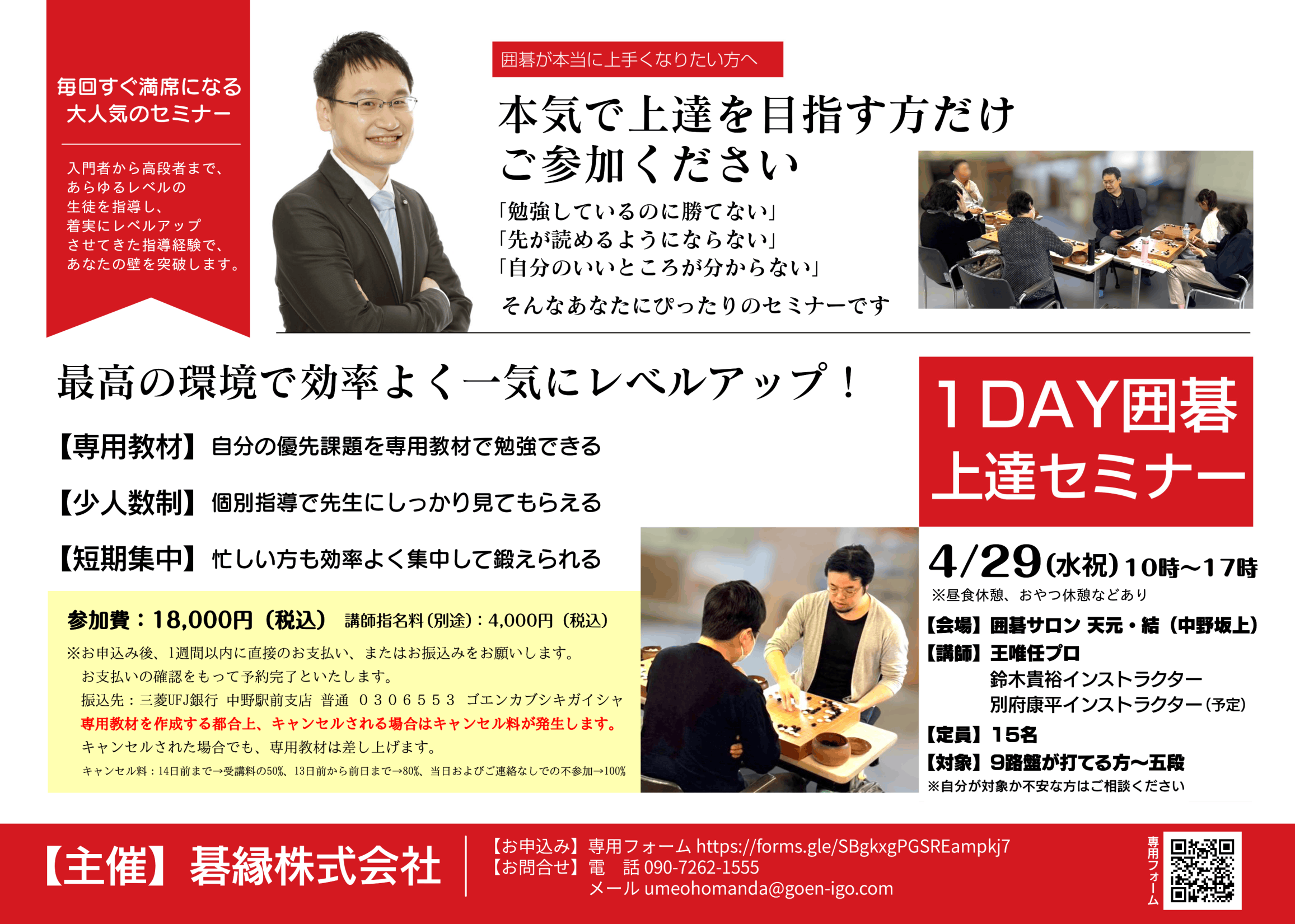 1DAY囲碁上達セミナーのお申し込みは↓